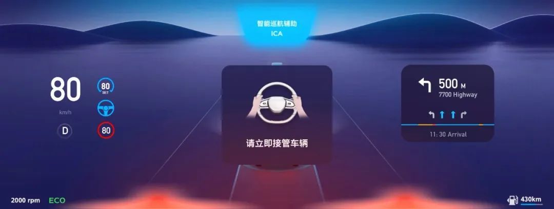 丰富人机交互,让你安心:在行驶过程中,传感器感知到的重要信息,都会实时在27英寸4K全景智能交互滑移屏上显示,包括换道超车、进入匝道、驶离NGP可用范围、偏离预期导航路径等,系统都会贴心地通过视觉及语音播报的方式进行提醒,并配有多种播报方式和频率可选,让用户安心使用NGP。