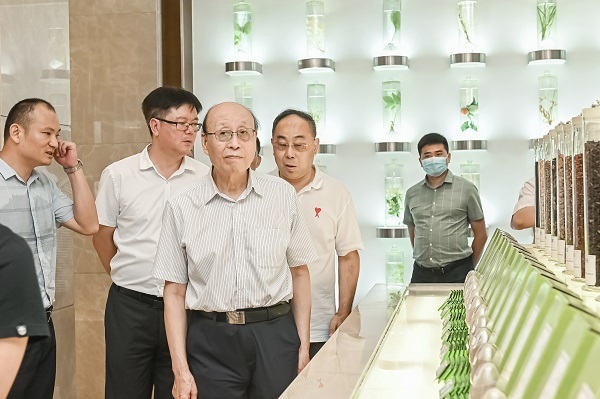 厅堂整面墙陈列了中药材水浸标本、腊叶标本,场面壮观;六味地黄丸等中成药、配方颗粒、饮片产品列于玻璃展台之上,充分呈现并展示出仲景宛西 “药材好,药才好”的制药理念。