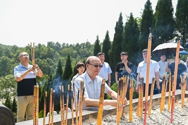 第五届OTC品牌宣传月活动特设“走进工业”环节,8月6日,仲景宛西制药诚邀OTC协会领导嘉宾、企业代表、媒体朋友以及活动执行方桑迪~六力团队等人前往总部参观。参访嘉宾主要包括,原河南省食品药品监督管理局局长张玉新,中国非处方药物协会原会长、专家委员会主任白慧良,中国非处方药物协会副会长兼秘书长汪鳌,副会长朱坚等一行众人齐聚医圣山,共祭医圣,敬献贡香,撞钟祈福。