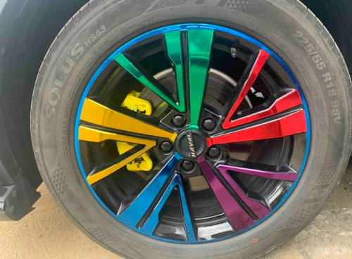 还有兄弟给哈弗赤兔涂“指甲油”,五彩斑斓的贴纸真的有被秀到,搭配黄色的卡钳,还真是花小钱出大彩,改装这事儿他是拿捏了。
