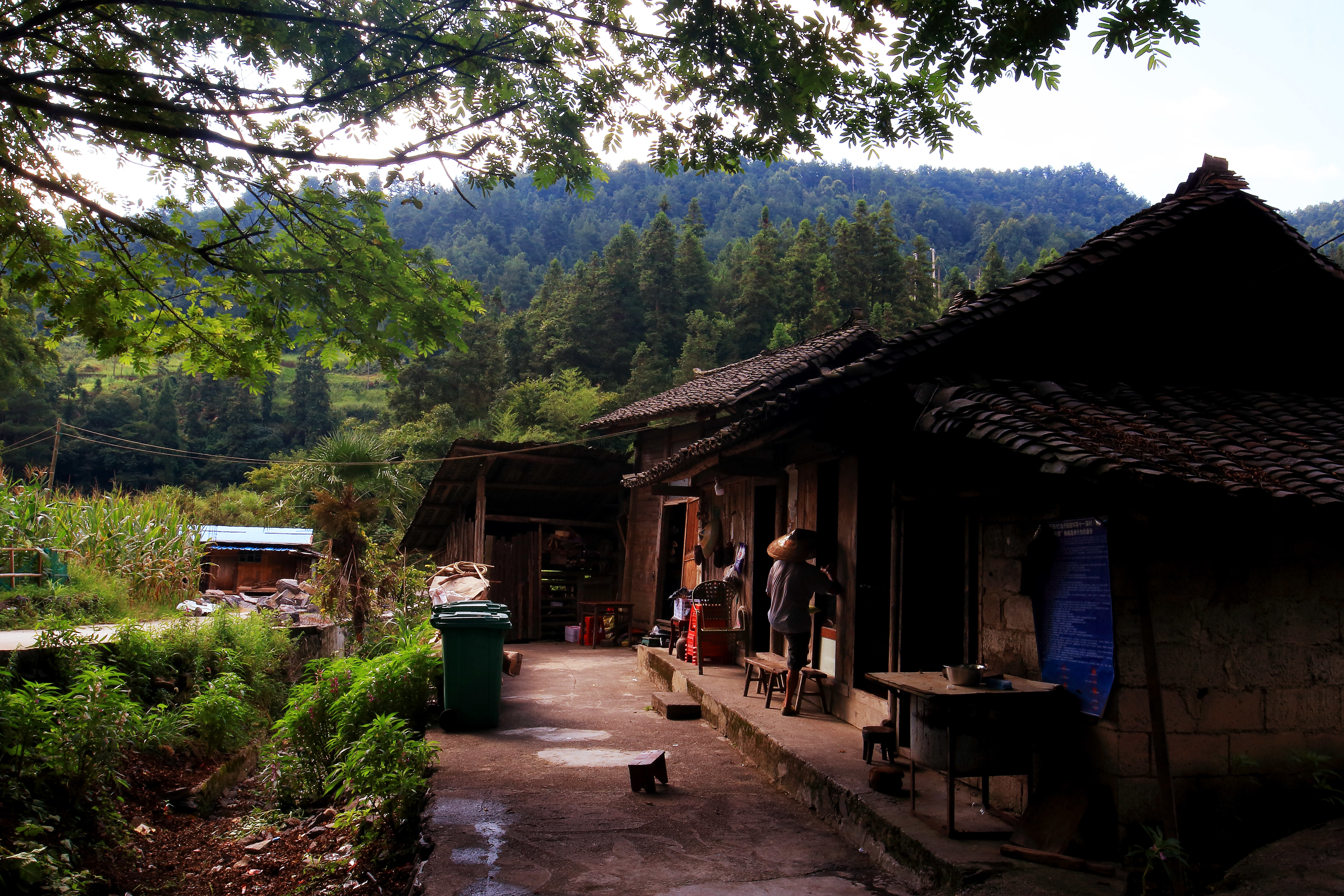 到了茶叶山村,是个难得保存完整自然村落,地方民族特色房屋有单门独户,多数是三五成群房屋,大概就是三十多户乡村人家。
