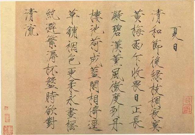 ▲赵佶《夏日诗帖》,楷书,纸本,后期风格,北京故宫博物院藏。