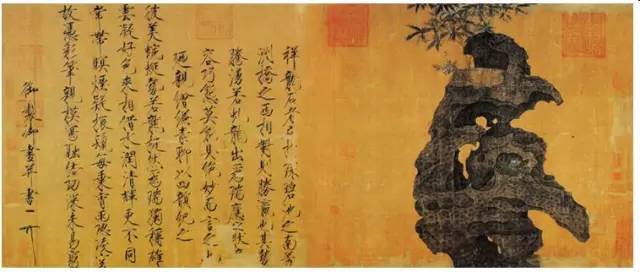 ▲赵佶《祥龙石图》,楷书, 绢本,设色 ,后期风格, 北京故宫博物院藏。