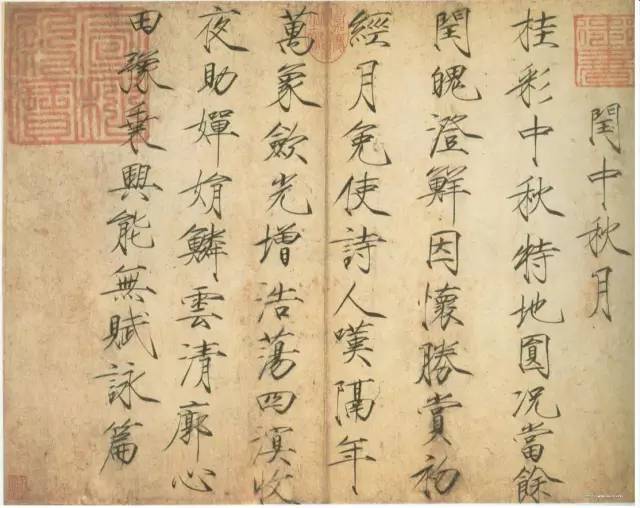 ▲宋徽宗《闰中秋月诗帖》,楷书,纸本,后期风格,北京故宫博物院藏。