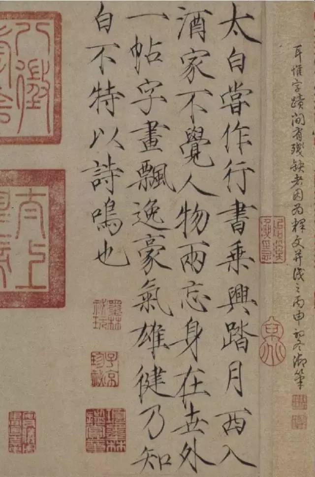 ▲赵佶《题李白上阳台帖》,楷书,纸本,早期风格,北京故宫博物院藏。