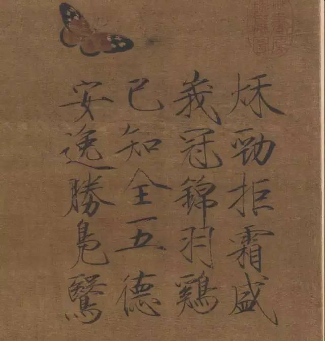 ▲宋徽宗《蜡梅山禽轴》,楷书,绢本 ,轴, 后期风格, 台北故宫博物院藏。