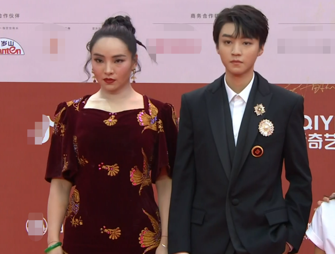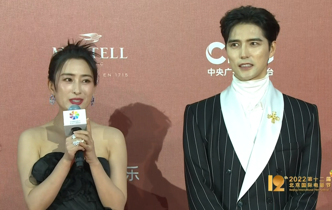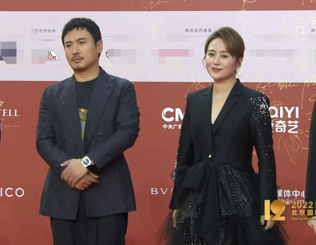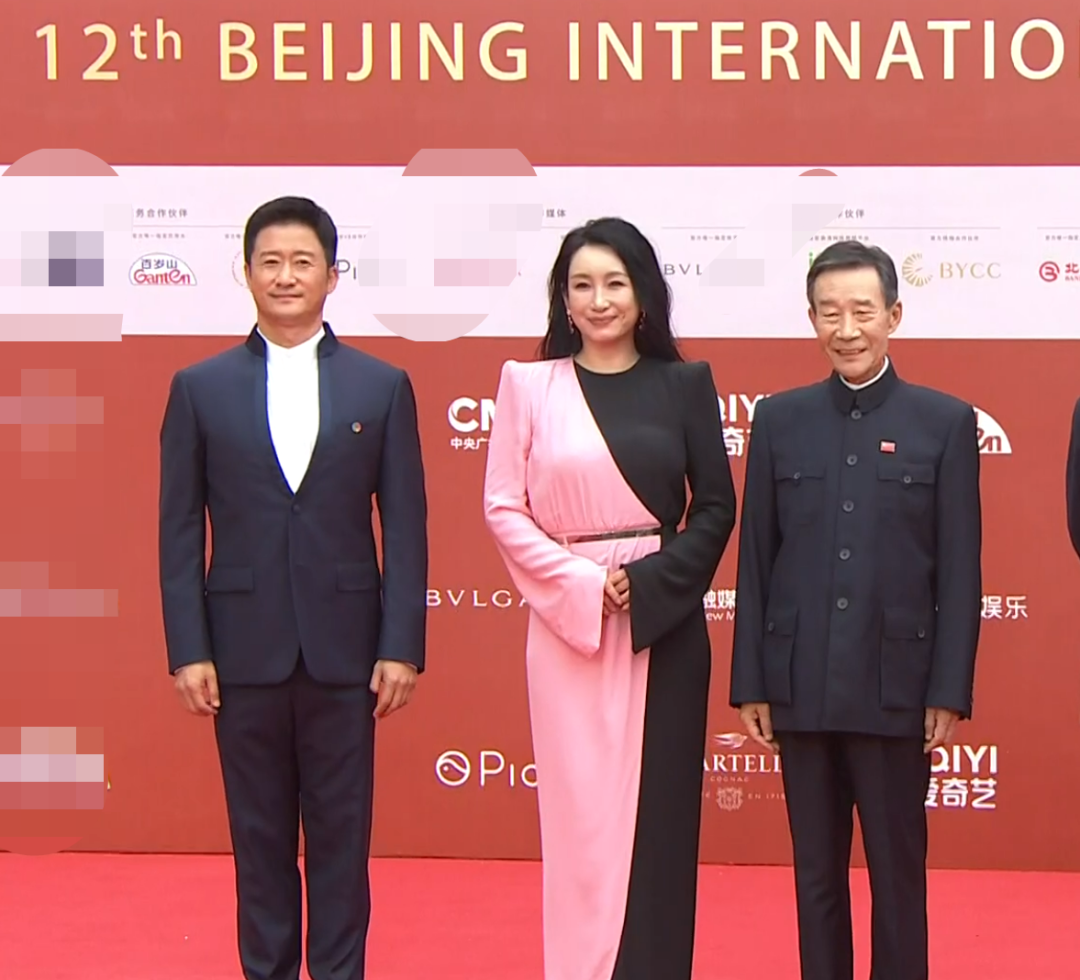 咏梅和祖峰一起走了红毯,咏梅穿了丝质半身裙配西装外套,温柔又庄重;祖峰像别的男演员一样穿了黑白配的西装。