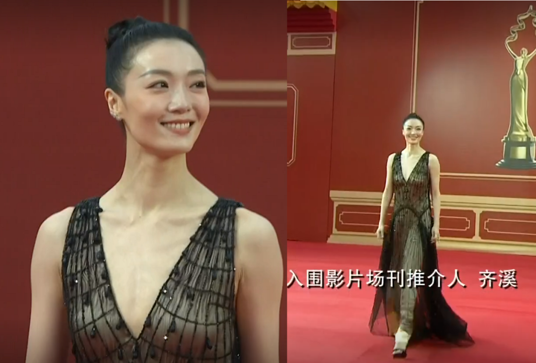 当身形高挑的齐溪穿上提高腰线的长裙,整个人看起来仿佛有一米八。即将38岁的她保养得非常好,笑起来的时候居然没有明显皱纹。