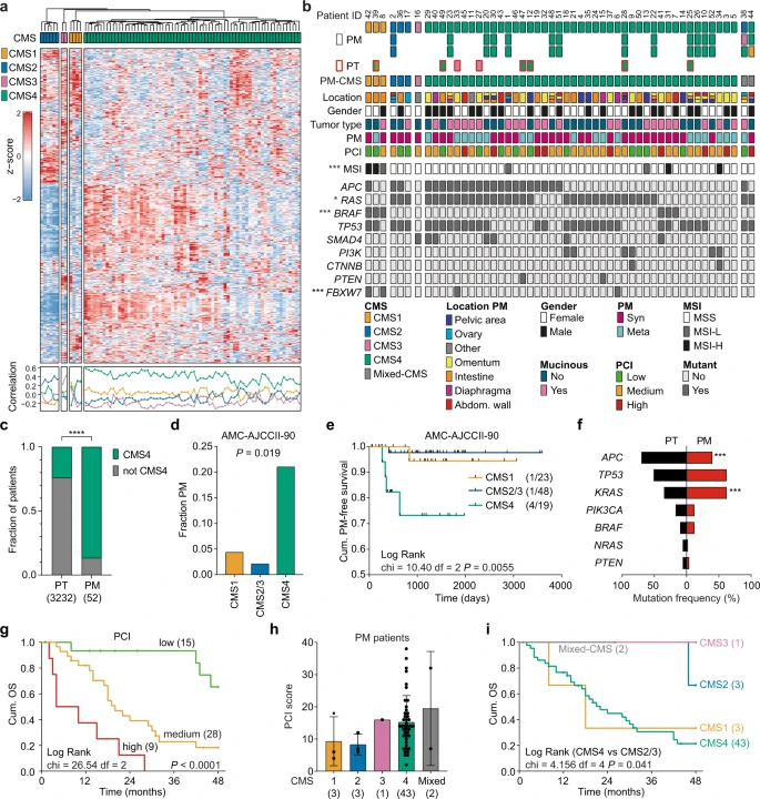 图3. CMS4腹膜转移聚类分为3个不同的亚组。来源:Nature Communications