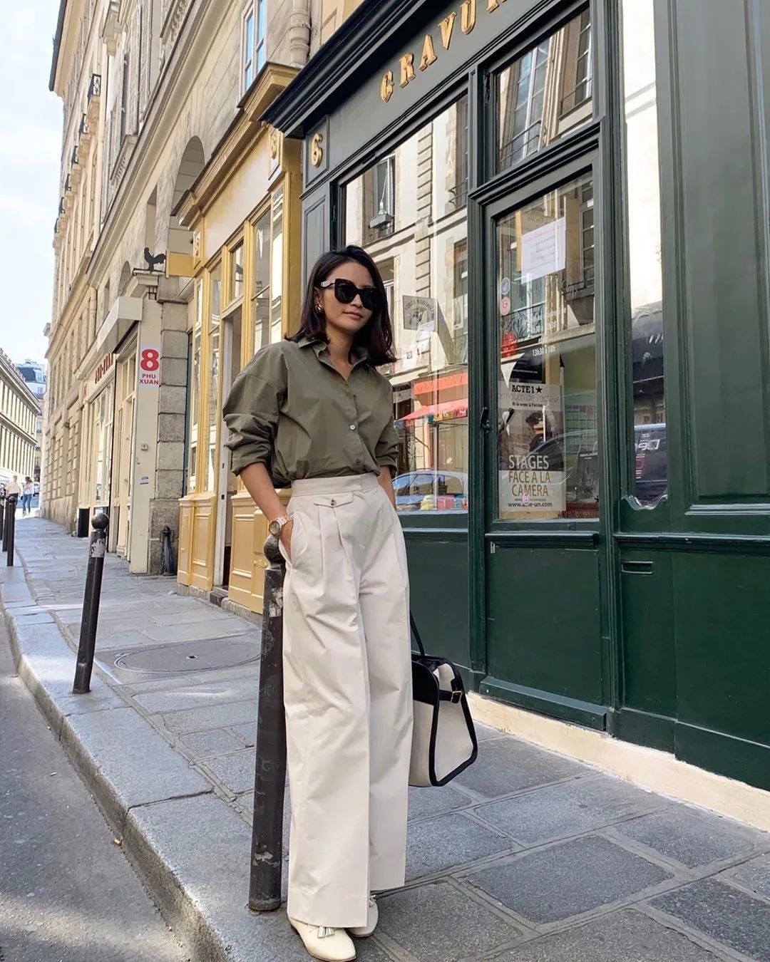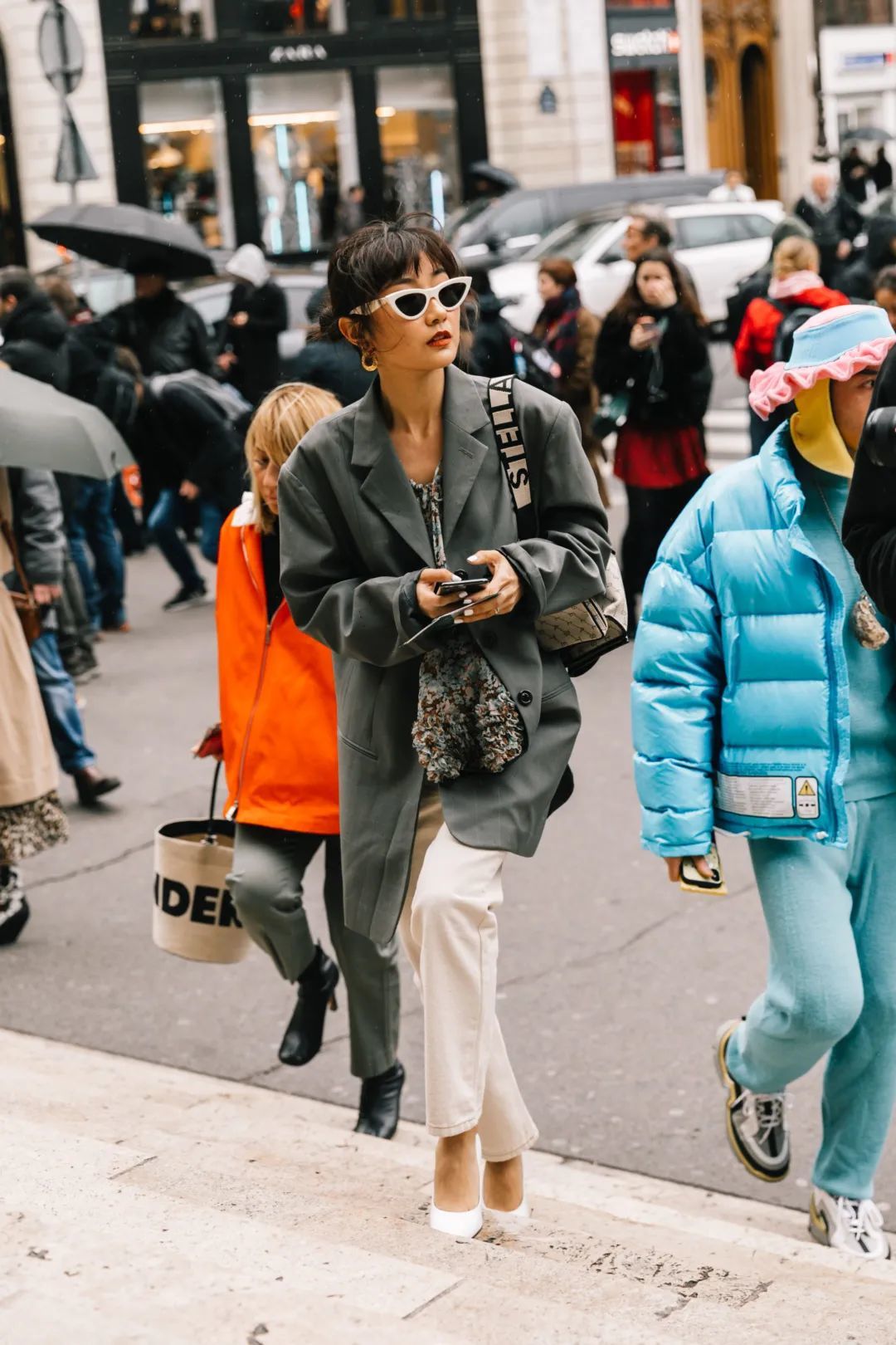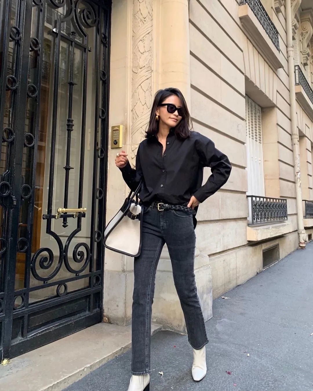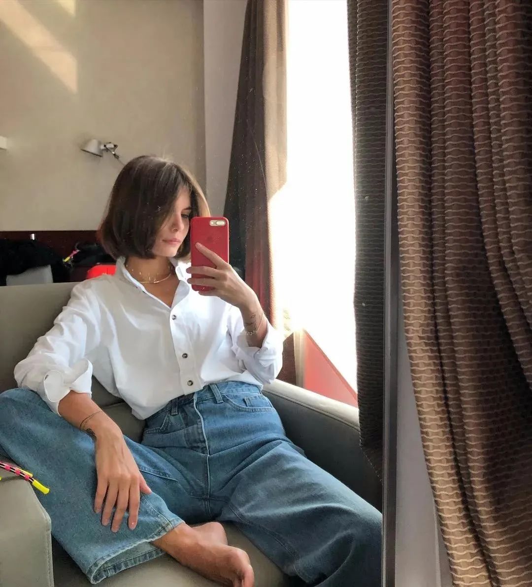 最后小编要提醒下你们,要是衬衫是这种宽松的oversized款,一定要记得塞衣角,强调高腰线,至于是塞前面一半,还是塞一半露一半,或者是全塞,都非常的时髦~