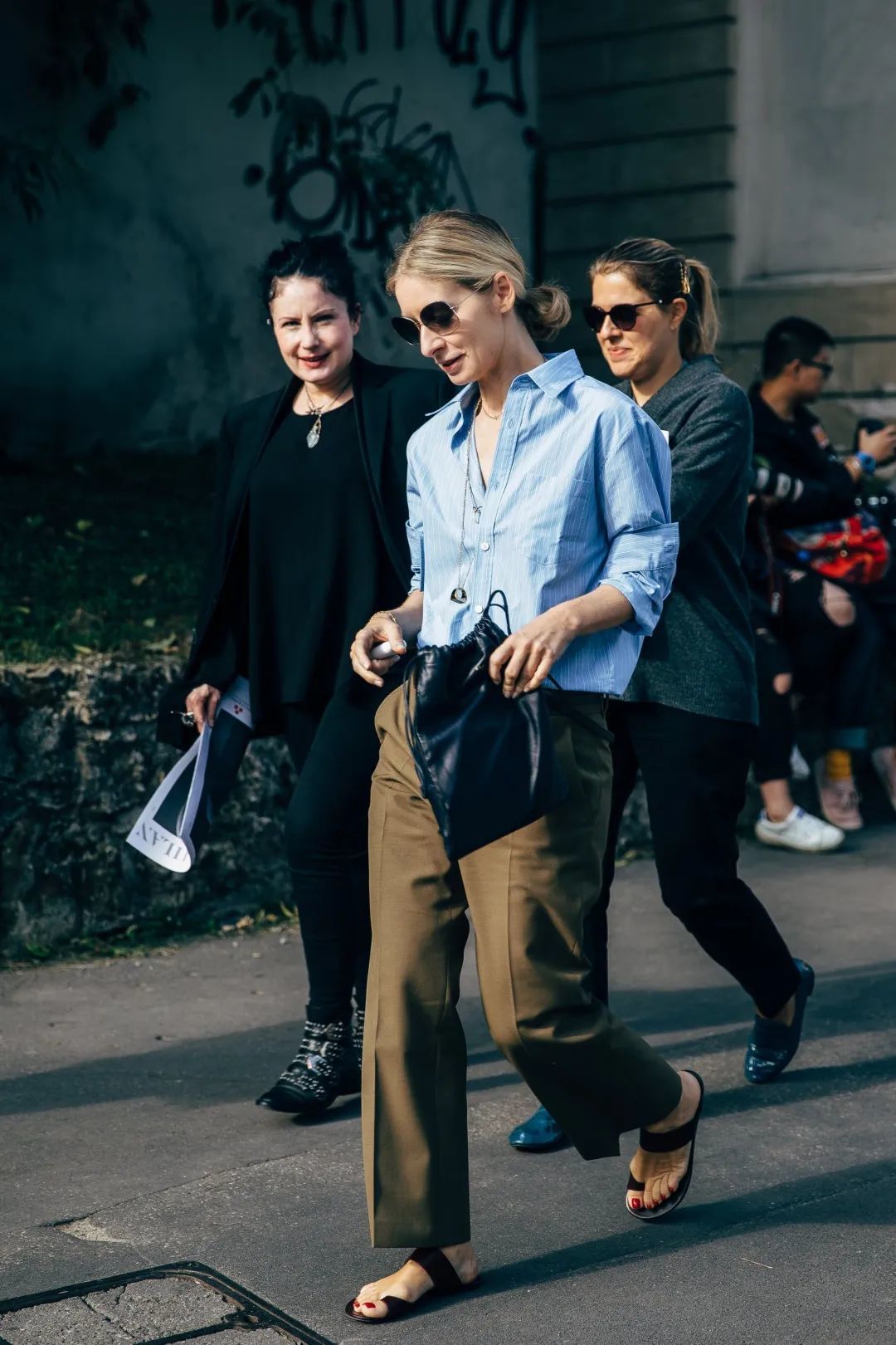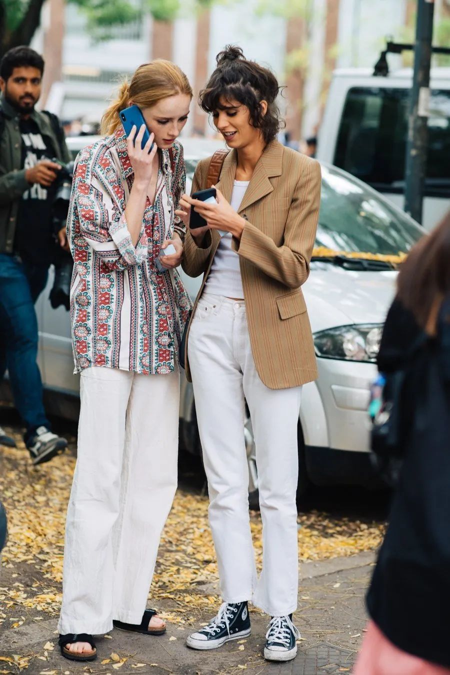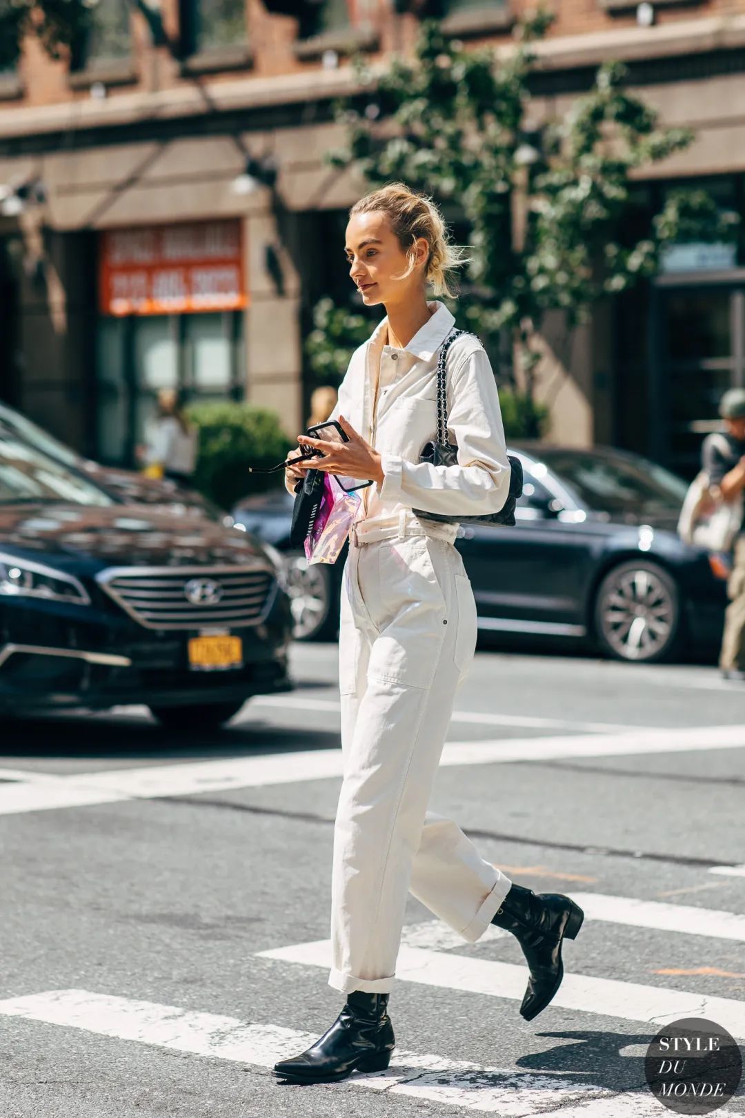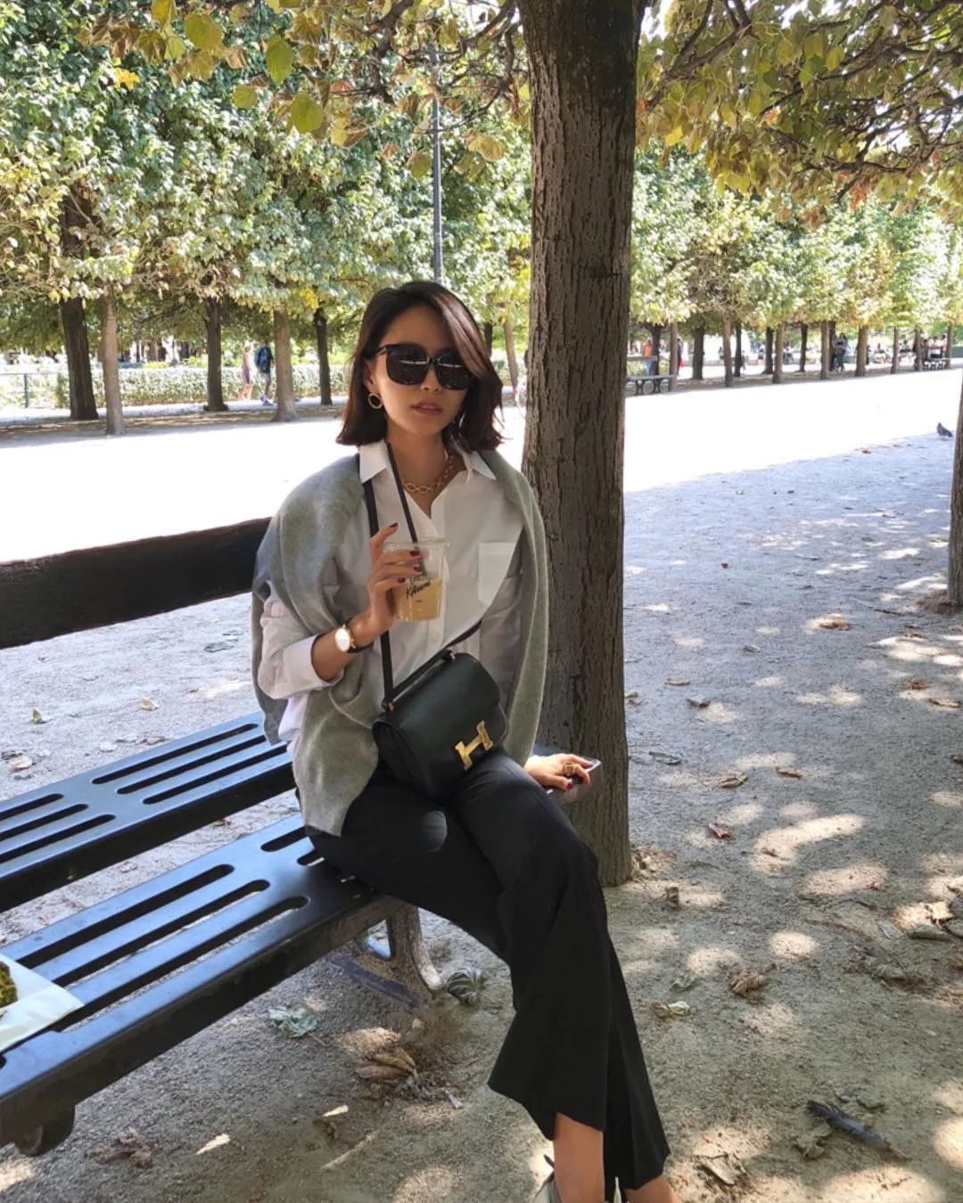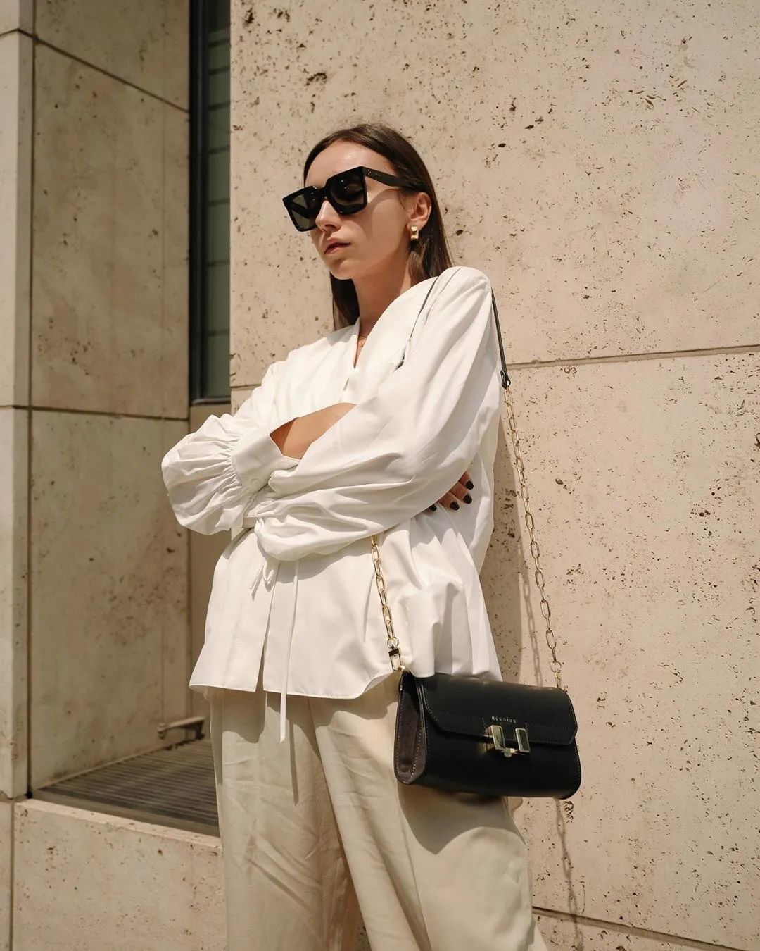 最后小编要提醒下你们,要是衬衫是这种宽松的oversized款,一定要记得塞衣角,强调高腰线,至于是塞前面一半,还是塞一半露一半,或者是全塞,都非常的时髦~