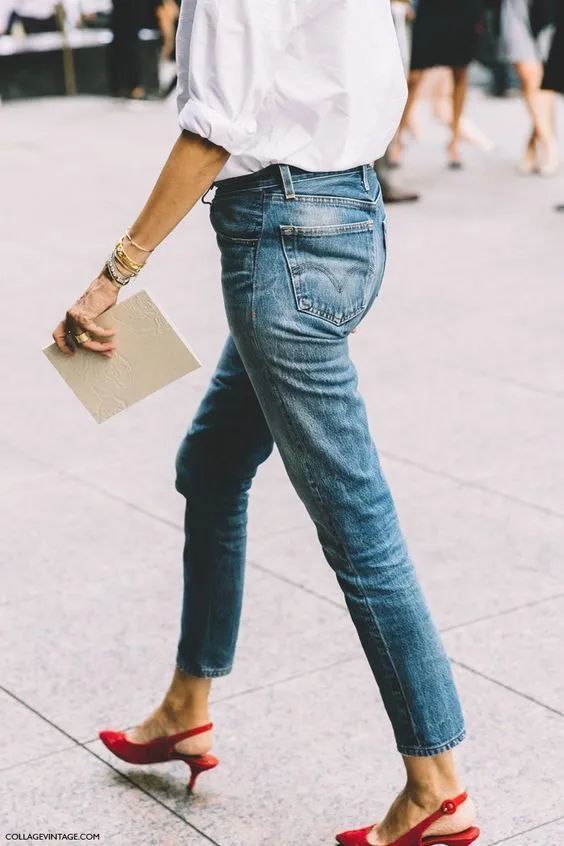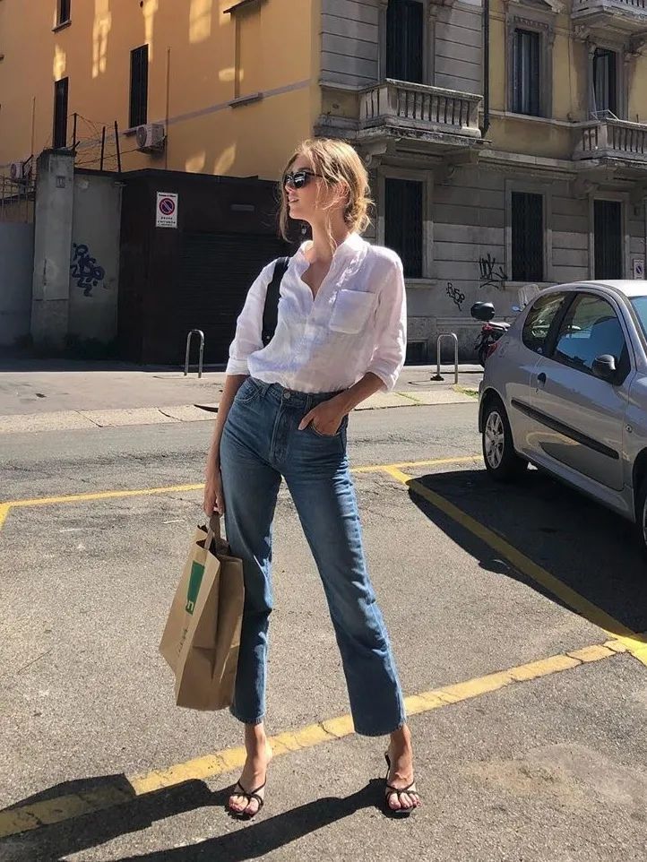 直筒裤拉长腿部比例,修饰腿形不直、胯宽屁股大等问题,小个子女生可以选择九分直筒裤搭配衬衫,露出脚踝视觉上更显瘦显高。