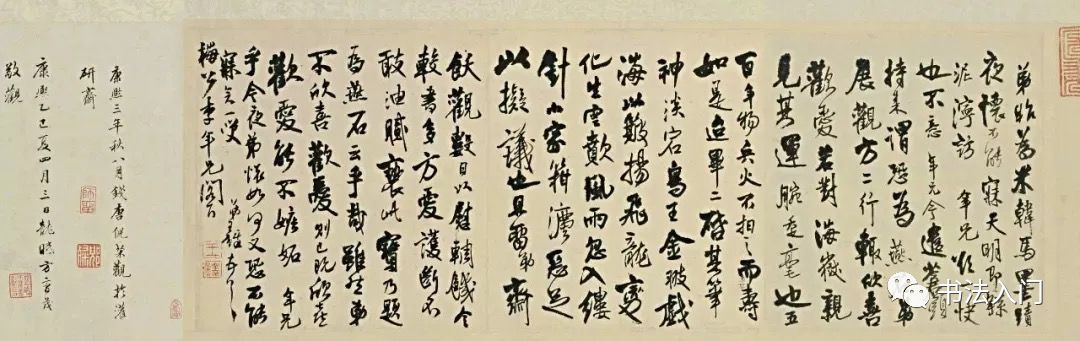 可见王铎对米芾书法的热爱。他也曾在米芾的《吴江舟中诗卷》后题跋道:“深得《兰亭》法,不规规摩拟,予为焚香寝卧其下。”