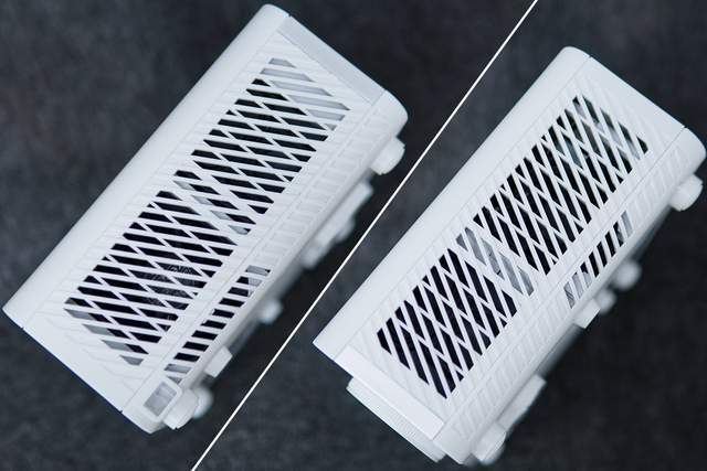 透过机身栅格可以看到风扇以及双扬声器,这个两枚扬声器是JBL定制的,功率达到了12W,声音效果很棒。
