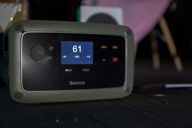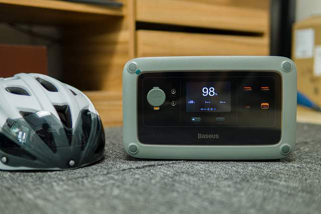 倍思这款新品户外电源是今年4月份刚推出的,不得不说颜值真不错,墨绿+黑的配色看起来比较稳重,V-0级别防火阻燃外壳非常安全。机身正面有一款TFT屏幕,可以显示电源的状态信息。