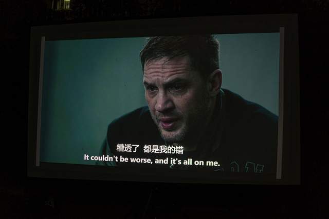 HDR映射方面,我这里使用了《毒液2》来测试,可以看到高反差环境下,屠杀身上的纹理依旧清晰可见,Q20使用的Dynamic Black 动态黑技术可以高效呈现暗场细节,同时画面依旧通透自然。