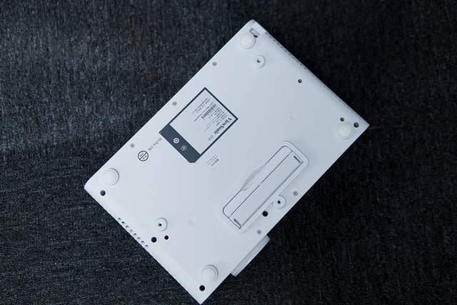 底部可以看到两段式垫脚,另外优派Q20的调节圈还有一个抬高环,可以小范围调节画面高度,对于吊装+幕布用户来说,缩放+高度调节+四向矫正等多个调节方式,既能方便调节画面位置,也能保证画面显示效果。