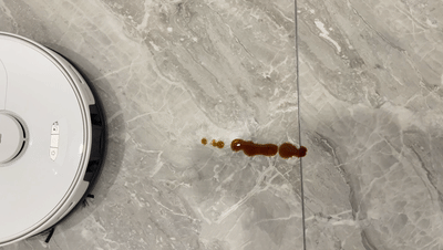 其次自然是拖地能力的测试,而这也是石头G10 Plus主打卖点之一。为检测其拖地表现,这里就以牛奶和酱油代替日常污渍进行模拟。结果显而易见,面对这些液体污渍,石头G10 Plus完全是轻松应对,几乎是一次过后,地面上已经十分干净,并没有污渍残留在地上。