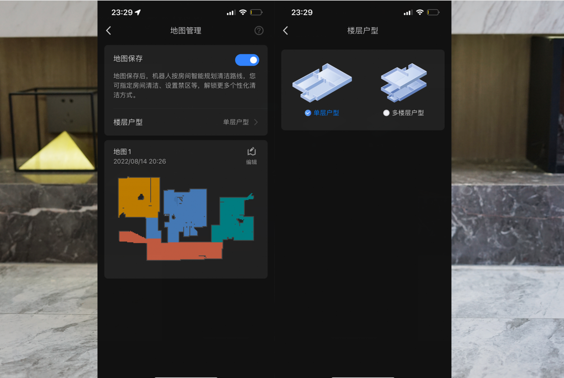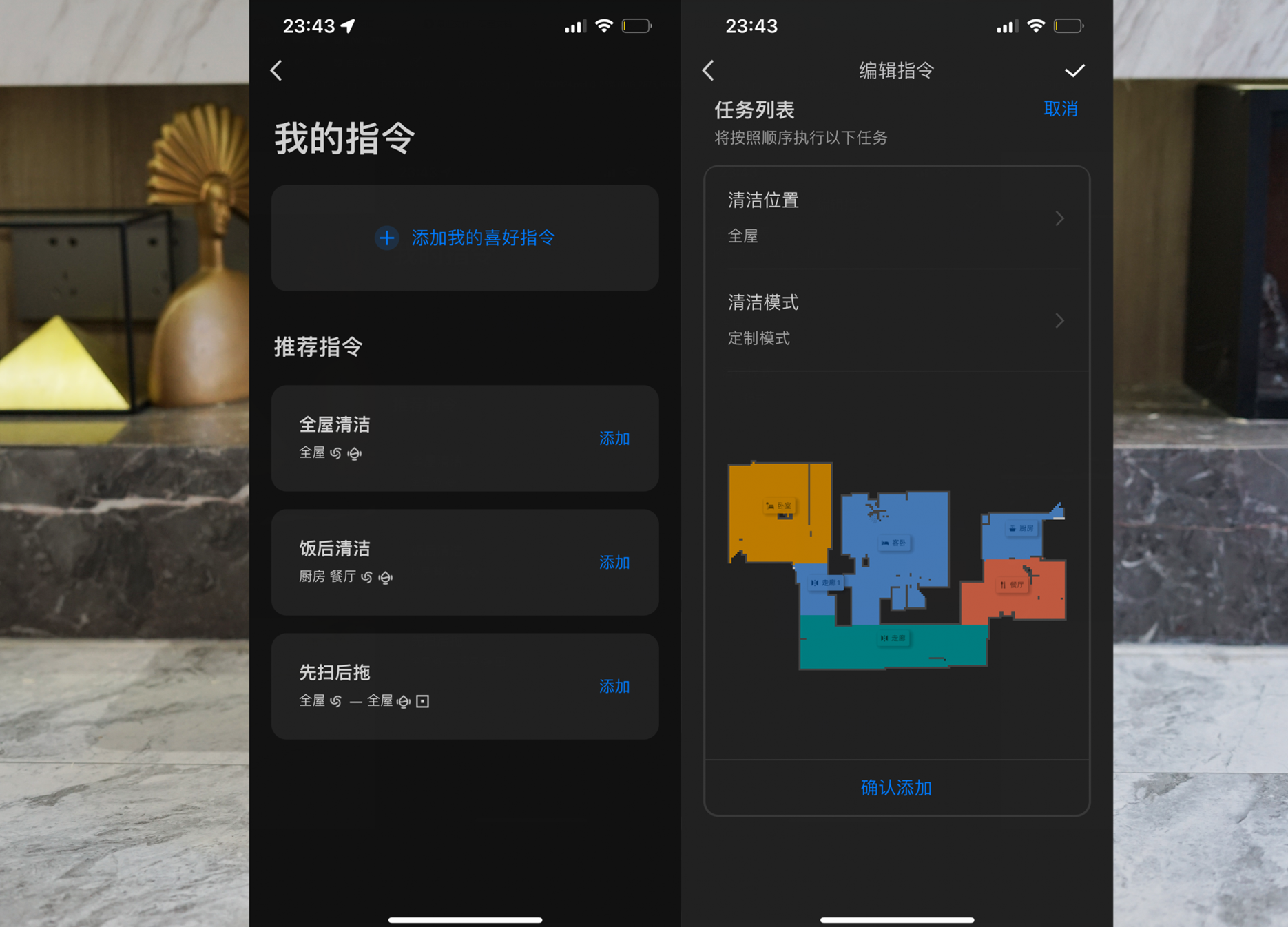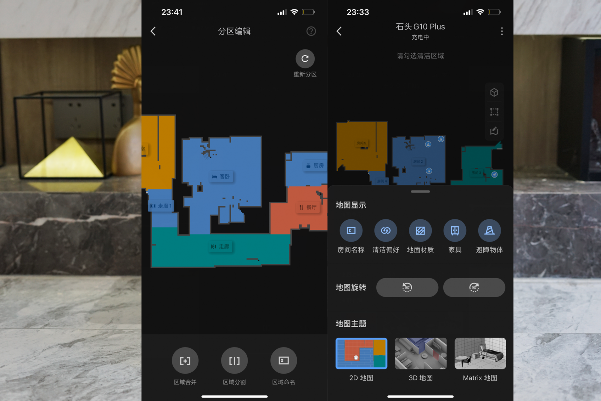 构建好地图之后,可以通过APP进行区域之间的划分,按照个人的使用习惯以及家庭需求,进行不同场景、时间段的智能化清扫和定制,将家中的不同区域进行划分,根据不同区域设置不同的清扫力度,进而实现更好的清洁效果。