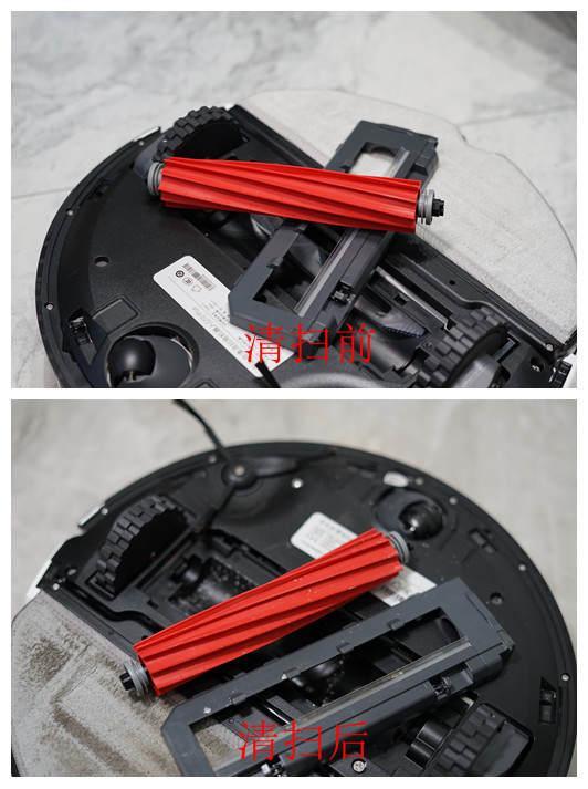 而且,在进行完测试并清扫了一次房间后,胶刷部分也是很干净,并没有毛发缠绕住胶刷,这也是TPU软胶材配合5长5短结构的好处。即使长时间使用后,有部分毛发缠绕胶刷,清理起来也是比较简单,并不需要大费周章去清理胶刷。