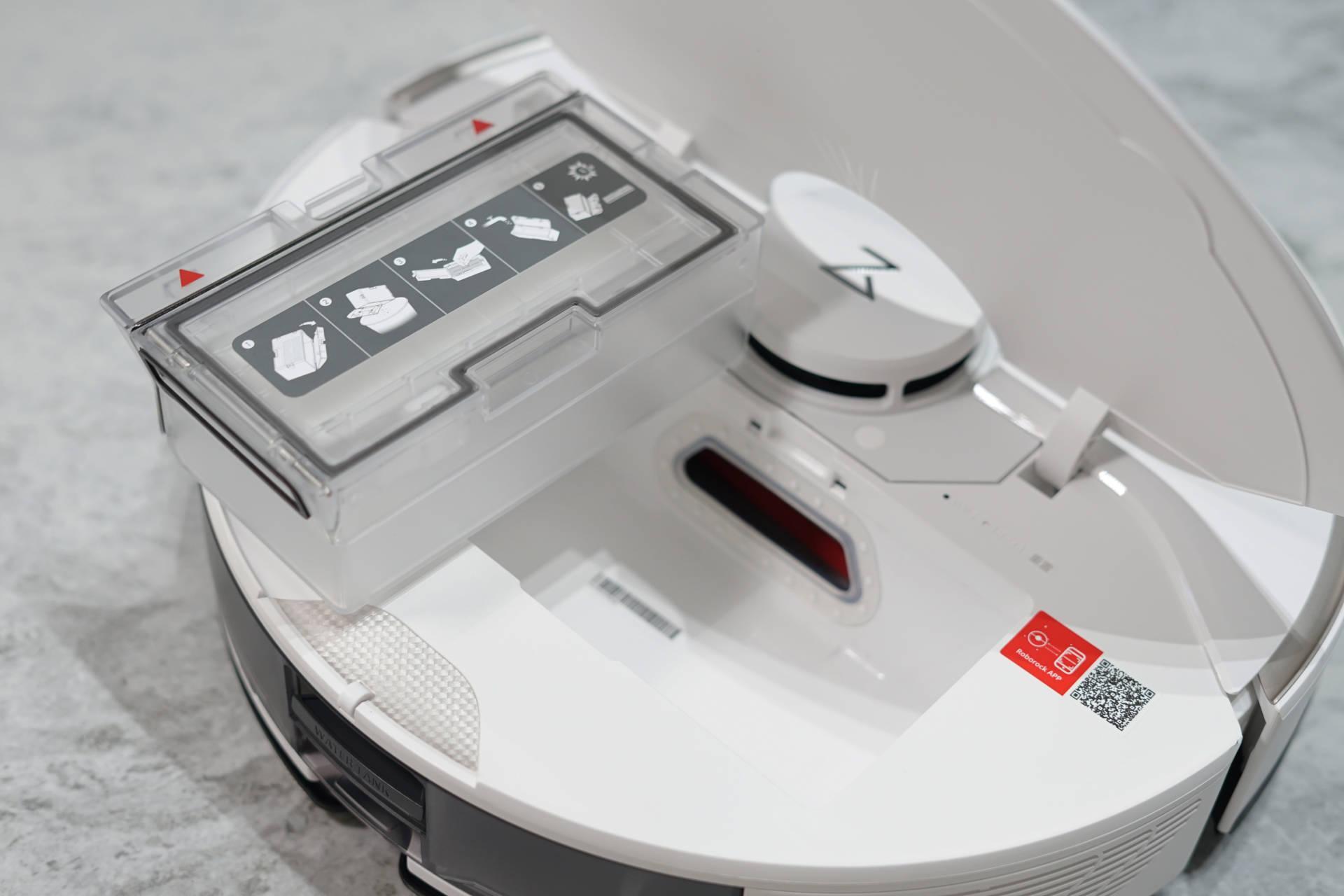而在机盖下方,则是尘盒部分,尘盒容量为400ml,相比于上一代而言虽然容量缩小了一点,不过并不会影响到日常使用,对于一般家庭的清扫集尘需求还是可以轻松满足,并不需要经常性更换尘盒。