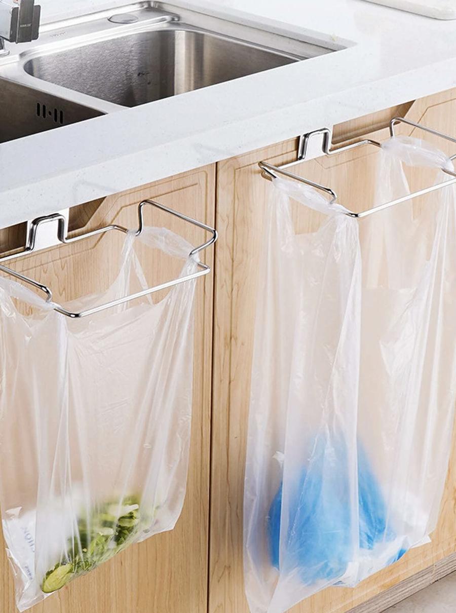 垃圾处理方面,既然放一个垃圾桶比较占地方,而且一些易腐烂的蔬菜瓜果皮和剩菜剩饭基本饭后就要处理掉,所以完全可以在水槽旁粘两个小挂钩挂上垃圾袋用来处理当日垃圾,其中一个用来挂湿垃圾,每天进行清理,另一个挂干垃圾,到垃圾清理日统一清理。这样既不会有垃圾桶干扰行走,整洁性也能得到保障。