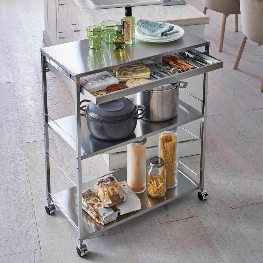 由于原本的收纳空间非常有限,因此可以尝试一下这种可移动式的储物架。