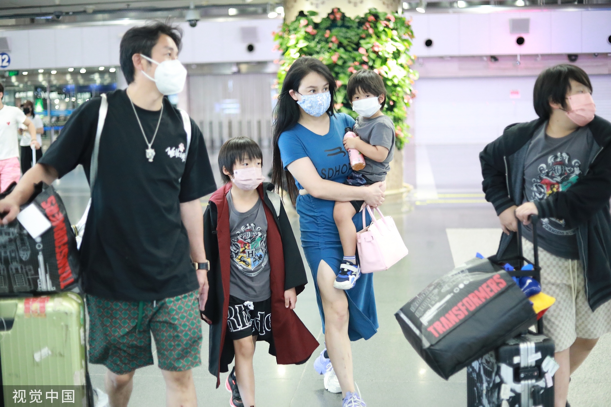 8月15日,邹市明、冉莹颖夫妇带着儿子邹明轩、邹明皓、冉明羲一家五口现身首都机场。
