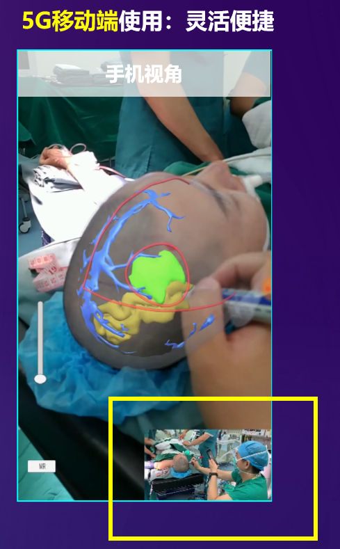 此次上海联通智慧医疗团队与华山医院神经外科专家医生紧密协作,充分运用AR增强现实技术,结合人工智能算法,基于5G便携式终端,开发了混合现实颅脑手术导航应用,帮助医生对脑部组织与病变进行更加精准的分割、三维重建和辅助定位,制定手术计划,进行手术预演,预知可能存在的手术风险并进行合理规避,全面分析进展性颅内出血风险因素和相关系数,挖掘潜在预测和干预目标,这在世界范围内属于前沿性工作。在中国联通5G医疗专网的支持下,患者核磁共振、CT的原始图像(DICOM格式)通过云存储发送至手机终端(每位患者平均500M-1G),上传和下载仅需要5s,手机辅助手术导航病变定位平均耗时4±1分钟,精度和传统导航仪相媲美,手术的定位精度从厘米级变为毫米级,使用的便捷性远超传统导航,能够实现针对偏远地区医院的远程影像处理、术前、术中指导,解决偏远地区医疗资源相对匮乏的问题。
