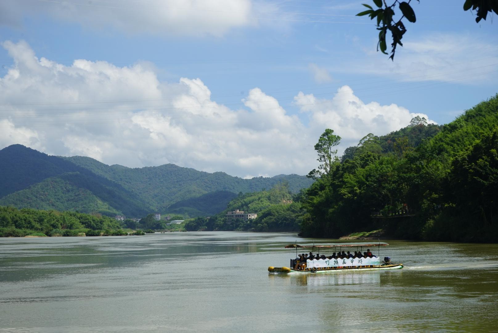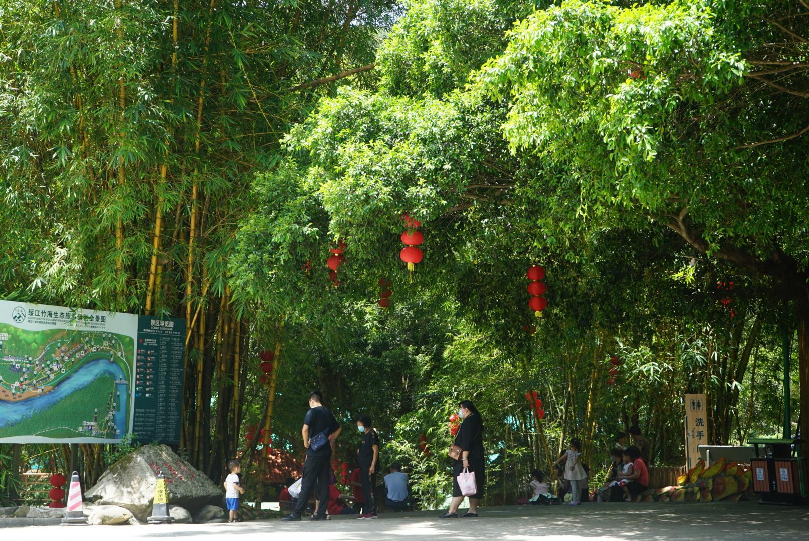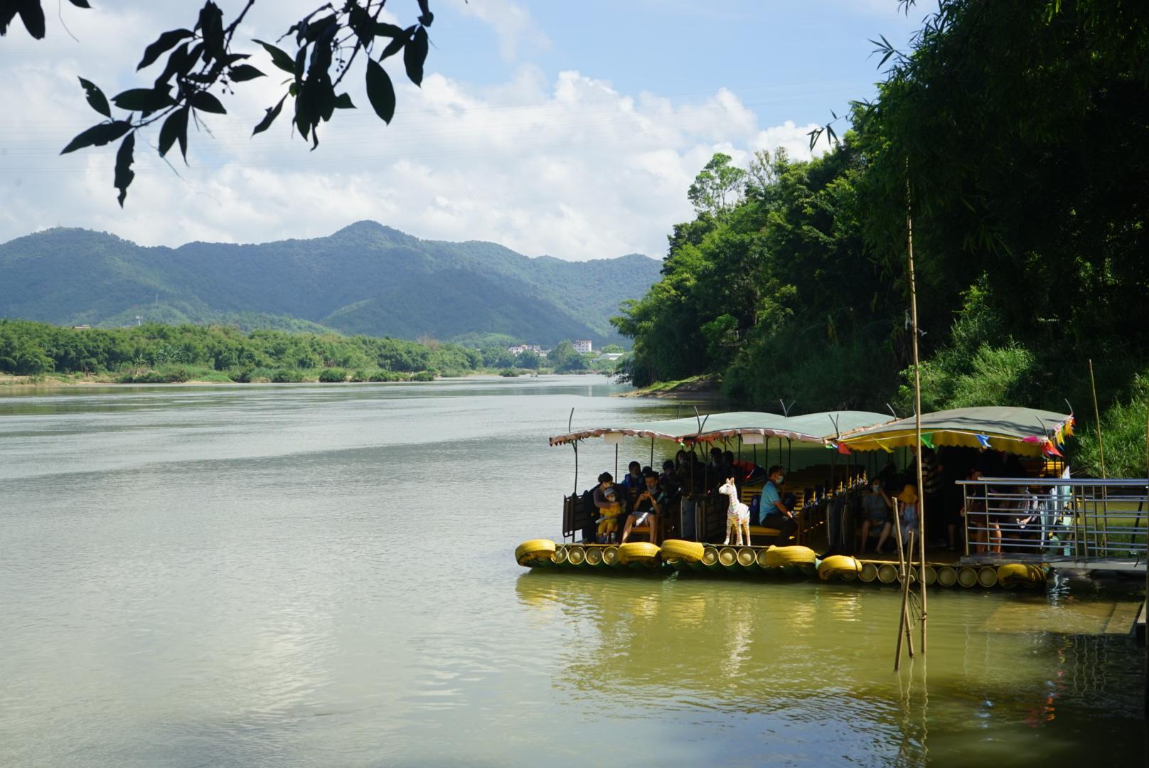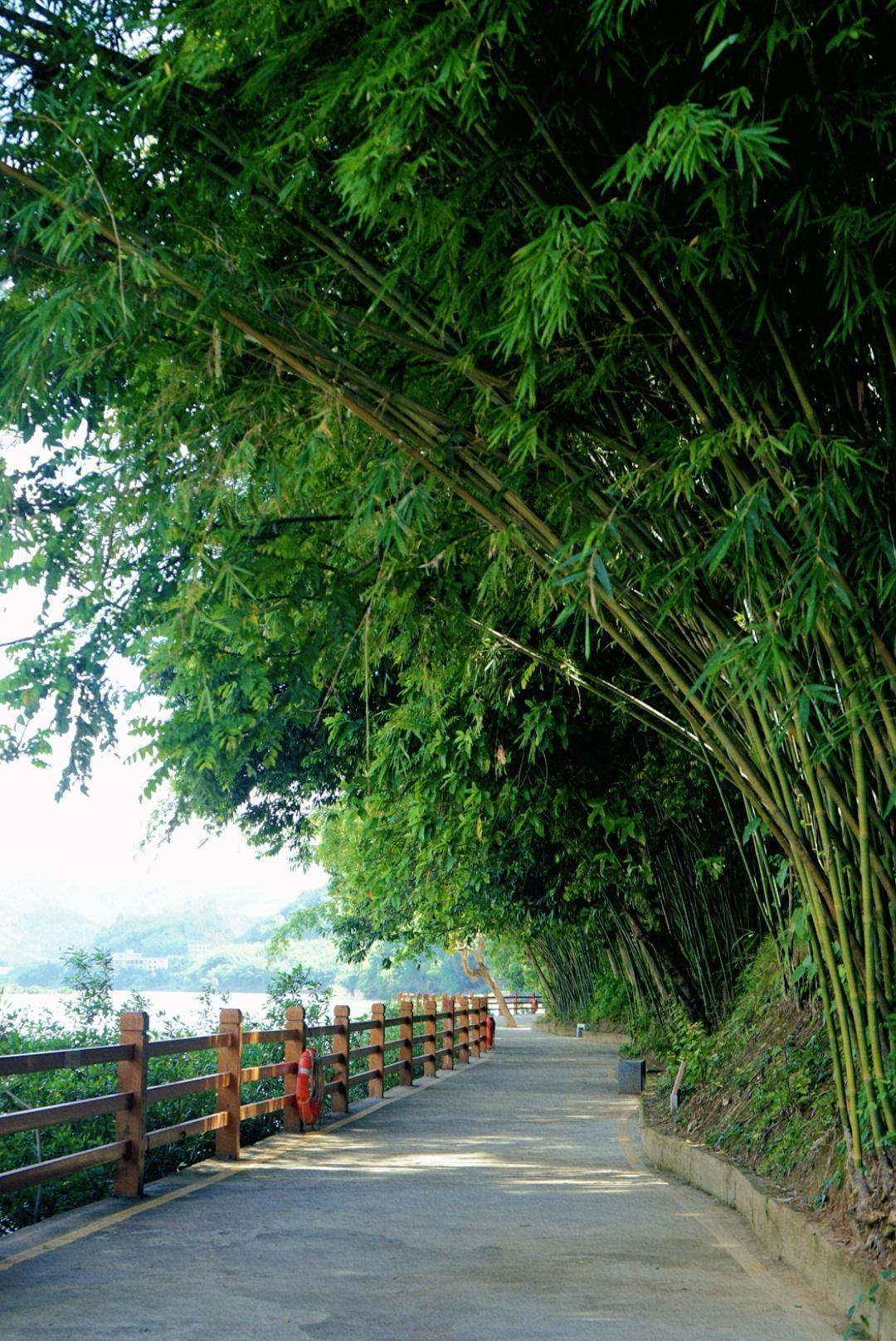 景区重塑绥江古码头,你可以选择搭乘竹筏,感受轻舟水上漂。花花则是沿着江边的凌波栈道漫步,在竹林的绿荫下,在中午时分竟也不会觉得太热。