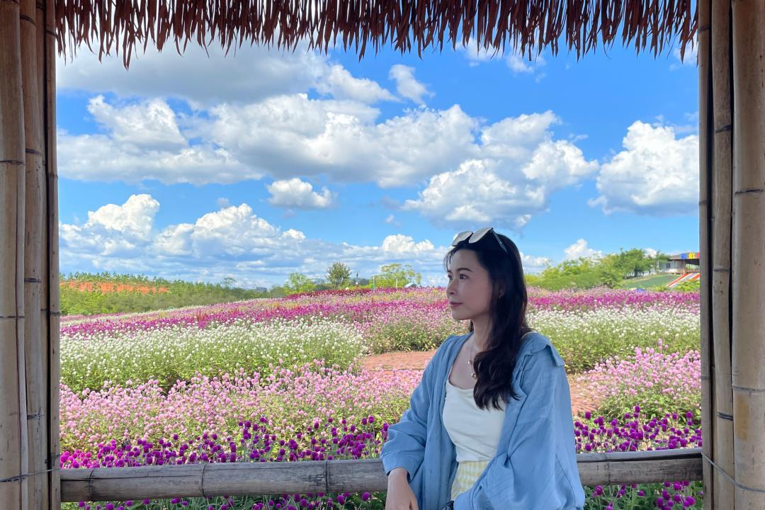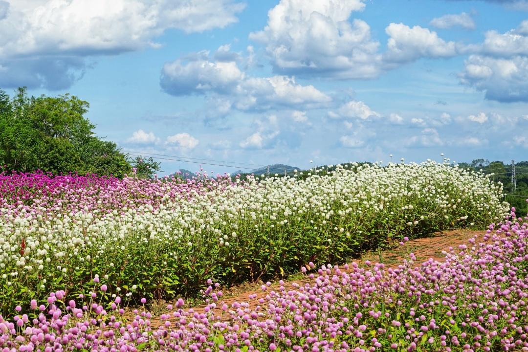 玫瑰花园、向日葵园、薰衣草花海等等,在蓝天白云下,随手拍照都是夏日里缤纷的色彩。