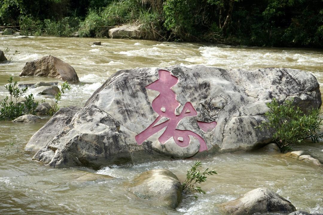 沿着十里奇石滩前进,可以看到河道上形状各异的石头,和两岸的青山绿水形成了一副和谐的风景画。