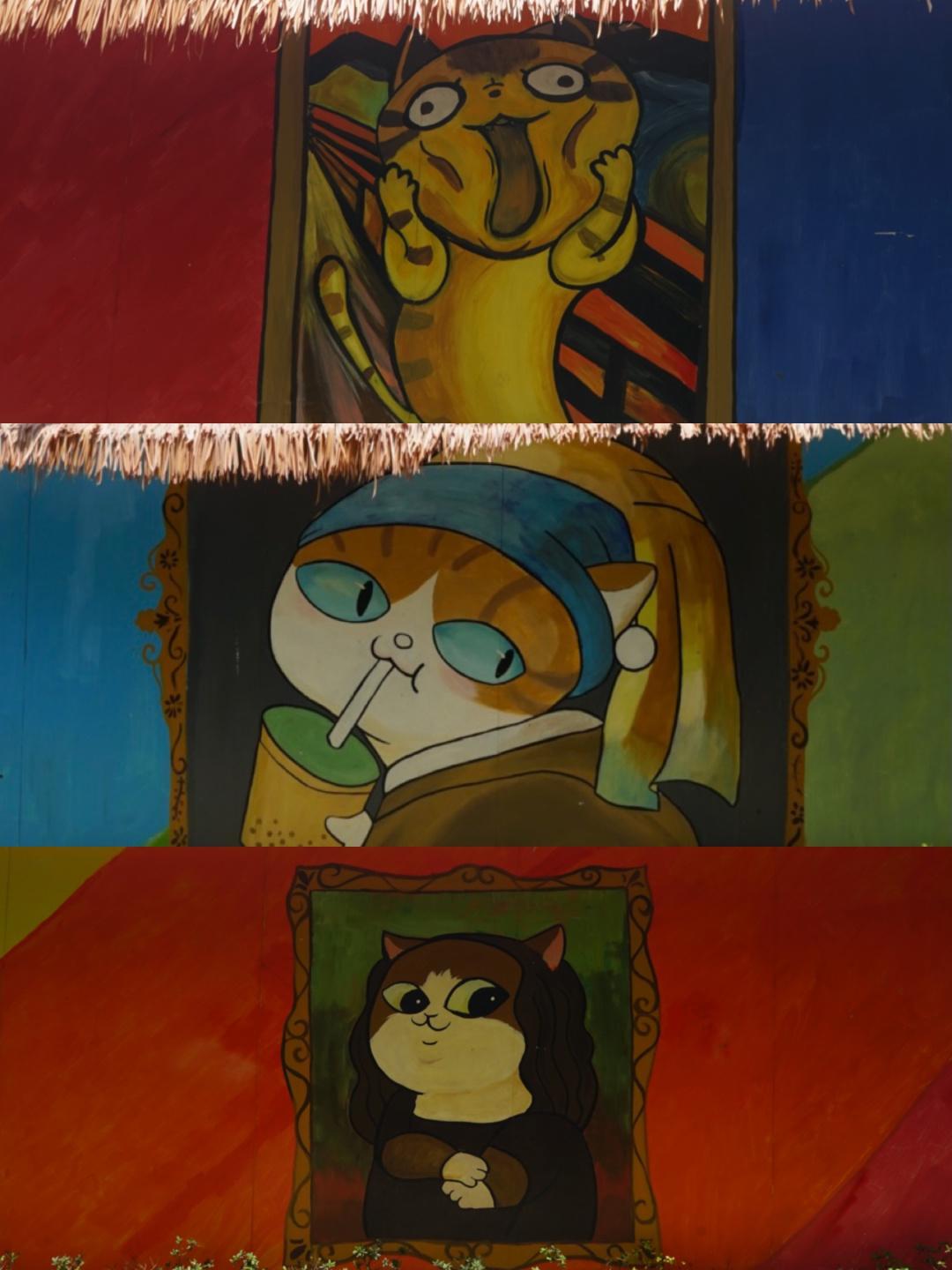 涂喵墙也是猫爪谷高人气打卡点,“呐喊喵”、“蒙娜丽喵”、“戴珍珠耳环的奶茶喵”……景区里随处可见的猫咪造型,每一个都有自己独特的造型。