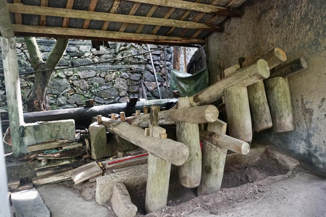 当地村民利用流水的冲击力和惯性,打造了一个水车群,据说已经有300多年历史,古朴又巧妙,都是劳动人民的智慧啊。