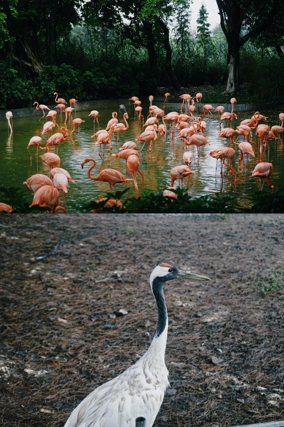 在星湖国家湿地公园,还有着南方最大的丹顶鹤生态园。你可以体验到亲手喂丹顶鹤的乐趣,花花也是第一次知道,原来丹顶鹤吃的是小泥鳅!这里还有自带滤镜的火烈鸟,别忘了合照哦。