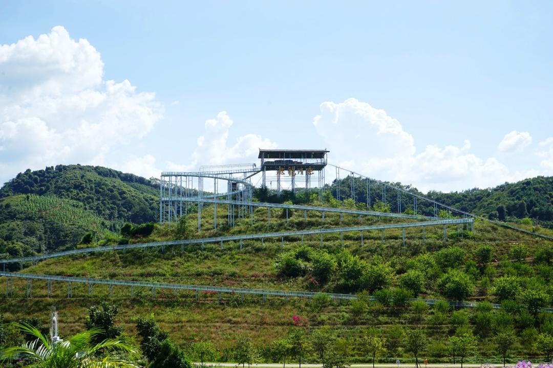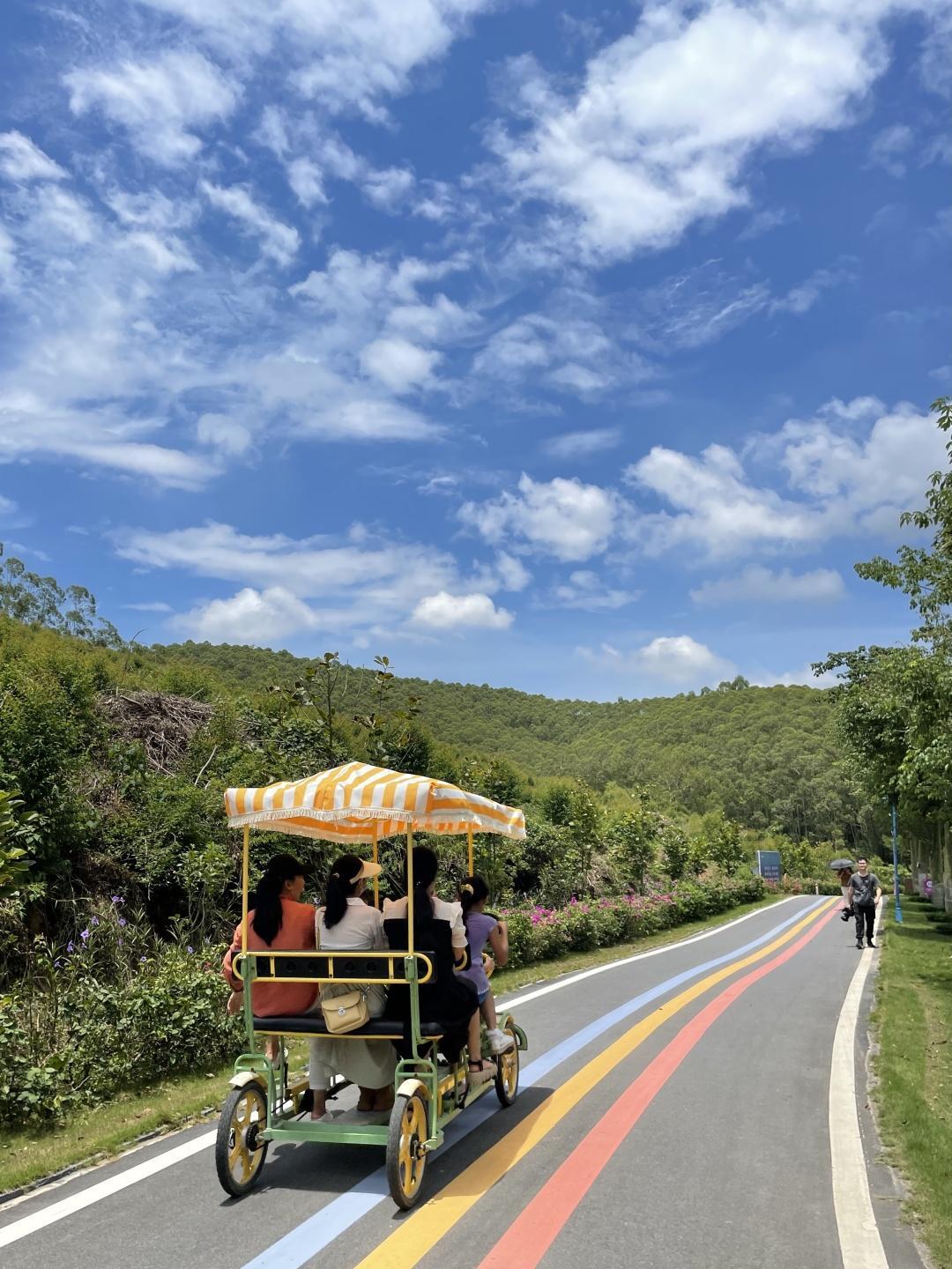 园区面积还是挺大的,大家游玩的时候可以选择景区里的往返小火车,或者可以租个多人单车,在彩虹道上向喵星人出发吧!