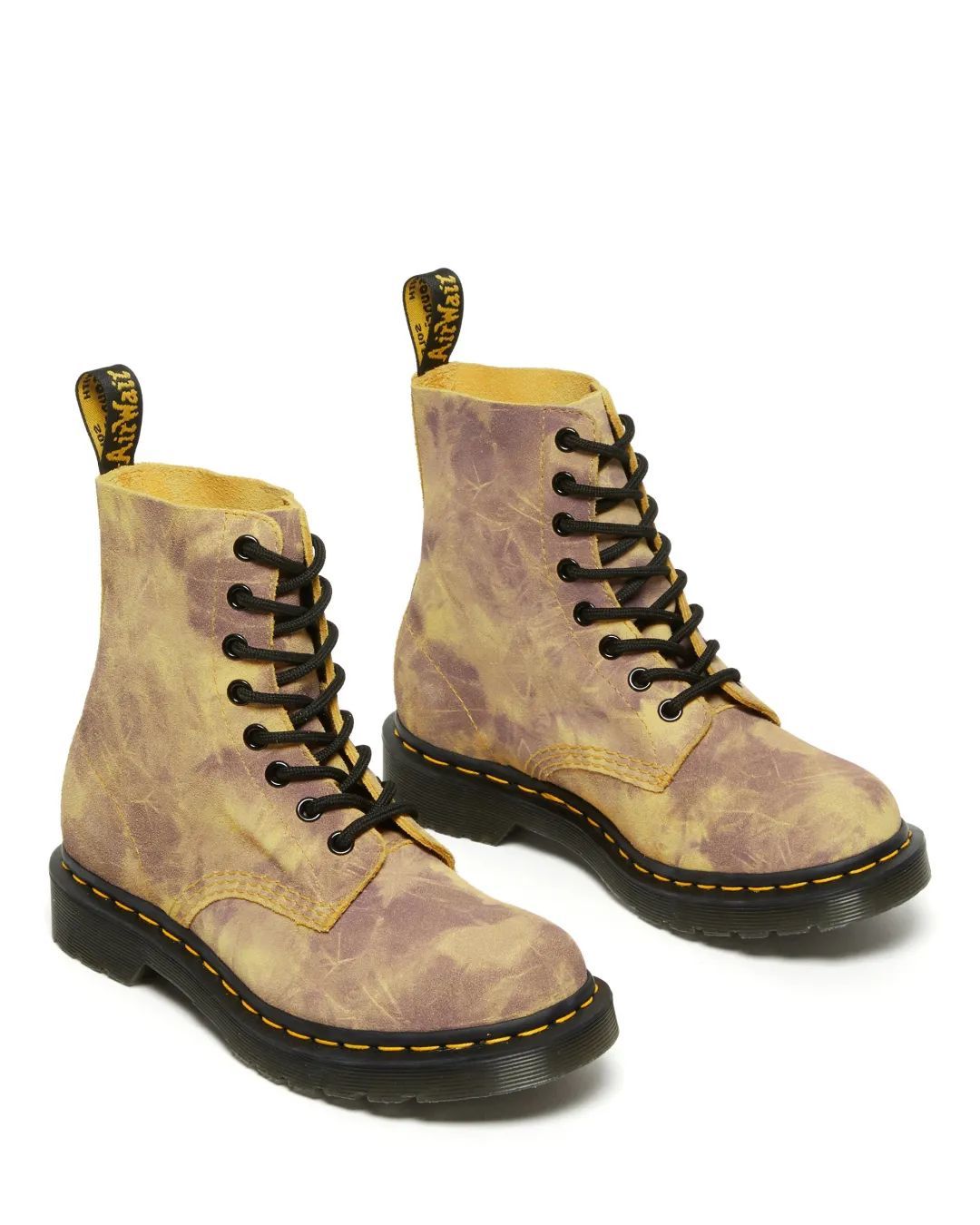 除了不出错的黑色系,马丁还为各位时髦精们带来经典的 Crazy Horse 系列与全新的 Grunge Tie Dye 系列,为早秋日常穿搭增添色彩。本季疯马皮系列采用 3.5CM 的 Bex 底面,同样拥有 1460、1461 及 2976 三个经典廓形选择。低调增高,在视觉上修饰腿部线条,提升身材比例。沉稳的深棕色疯马皮搭配复古金色鞋孔,质朴却有态度,个性却不张扬,与品牌经典的黄色边缝线更是相得益彰。无论如何搭配都能散发独一无二的魅力,让人眼前一亮。