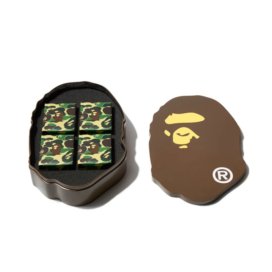 中秋将至,阖家团圆,BAPE® 推出中秋月饼礼盒,为中国猿人呈上浓情中秋祝福。 此番中秋礼盒颠覆以往设计概念,以经典猿人头轮廓打造的铁盒质感高级细腻,极简外观设计承载独特的东方韵味。礼盒内含有 4 颗迷你奶黄流心月饼,浓郁奶黄流沙馅料搭配咸香蛋黄,口感松软醇香;精致猿人头饼面搭载绿色 ABC 迷彩纸盒,将 BAPE® 独特品牌基因完美渗入传统风味。