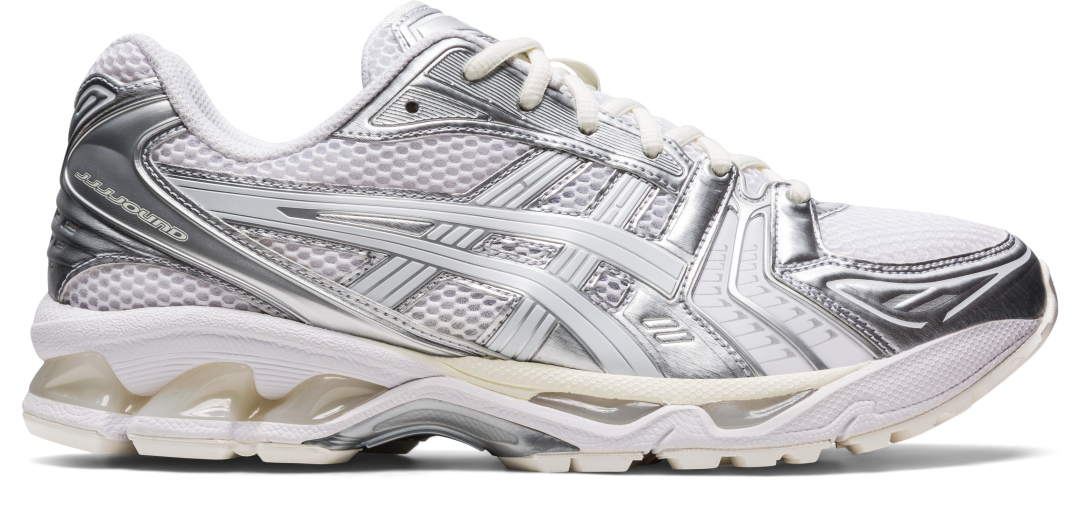 ASICS x JJJJound GEL-KAYANO 14 共推出两款配色,分别采用清爽的白色、金属银作为主色调,鞋款表面选用网眼材质,点缀压花细节图案。与此同时,鞋身两侧融入品牌联名标识和反光设计,保留了鞋款原有的标志性设计语言。