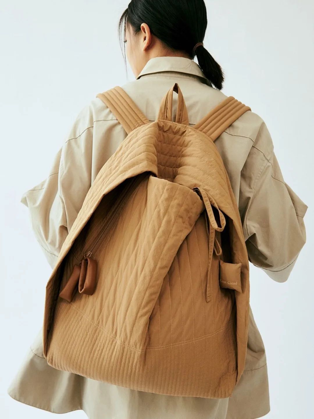 创立于 2020 年夏的 Clout Cloud 发布首个系列 —— 早安系列,灵感源于清晨的被子,采用垫棉绗缝工艺适度还原被子的质感与形态;充棉的刺绣唛头仿佛床上的枕头;前幅的折角仿佛起床时掀开的被角状态;将这些轻松、舒适的元素还原到一个包上,试图让早晨在床上的舒适、自在延续、陪伴一整天。