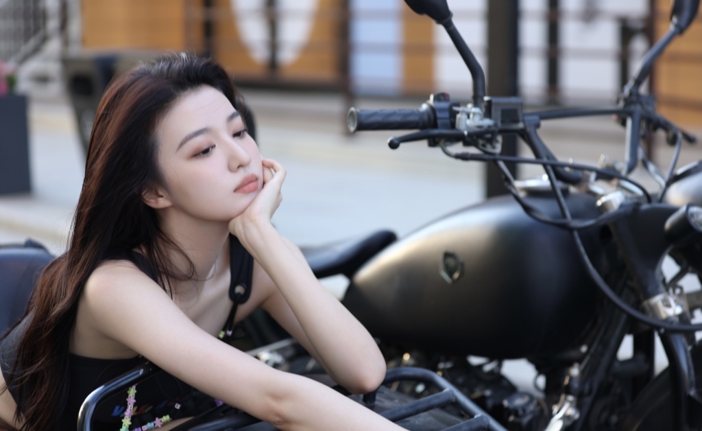 王楚然拍摄机车风街头写真 五官精致长发飘飘