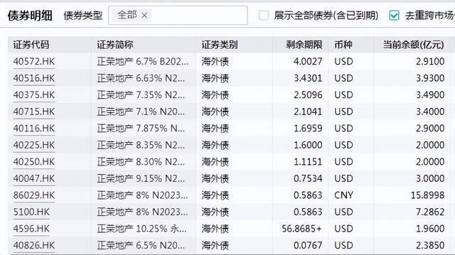 截至目前,正荣地产处于存续期内的有12笔美元债券,约254.11亿元;境内债方面,正荣地产控股目前存续债券11只,共计56.83亿元。