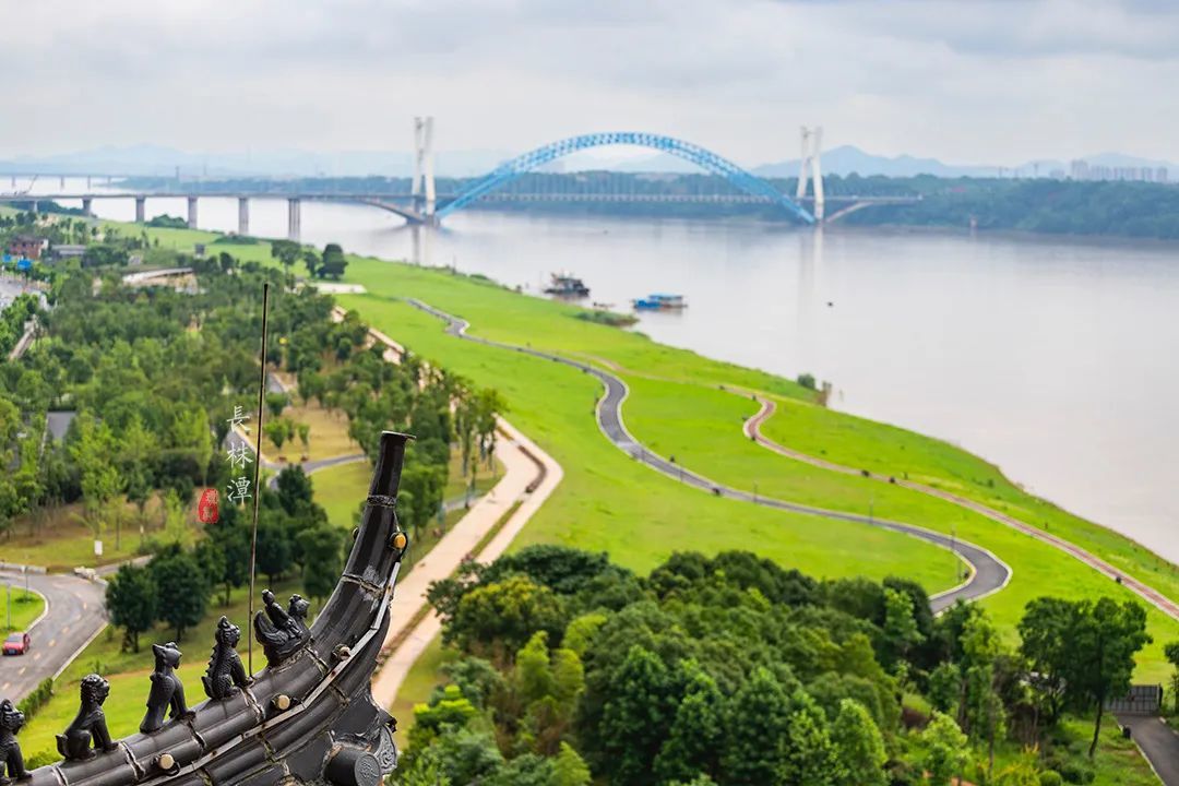 乘坐电梯一层层往上,能看到的景致也越来越壮阔。视野里湘江从南向北不停奔流,河道只在潭城腹部划了半个圆圈,再转向东北部的长沙。这片土地,如此特别。