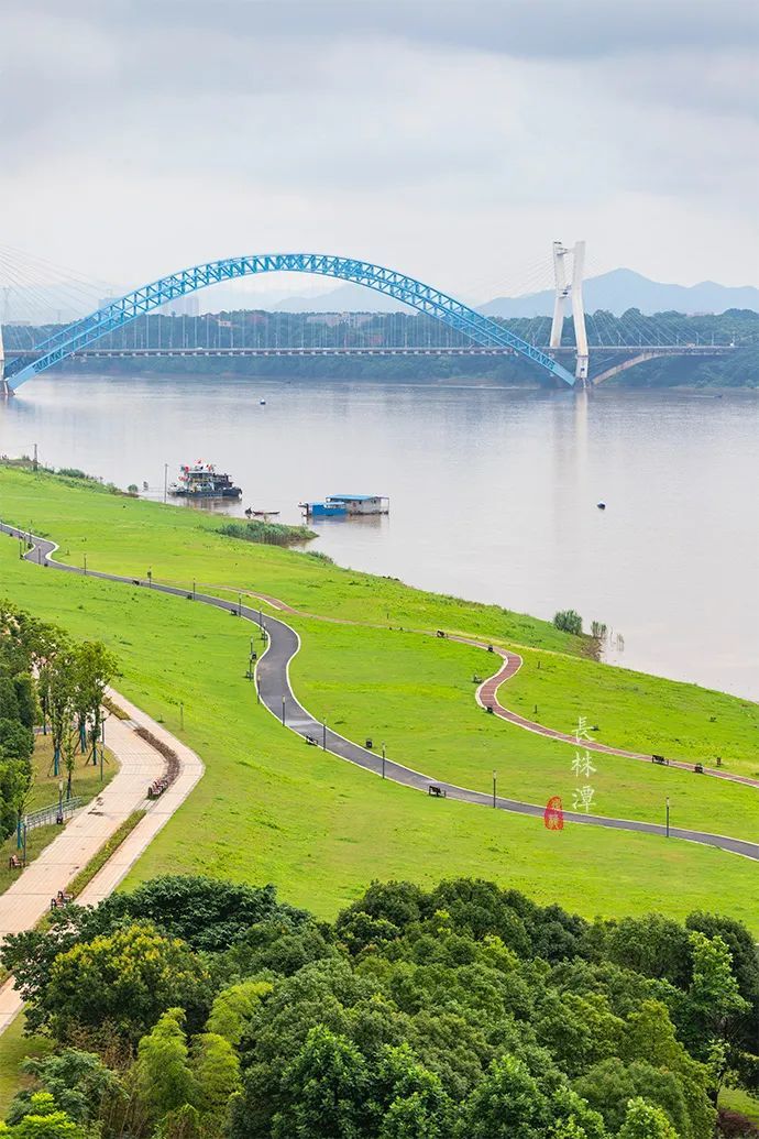 宽阔的江面,没有风的时候宛如一面明镜,倒映着天空中的云海,也倒映着湘潭摩登的都市,不时有货轮缓缓驶过。