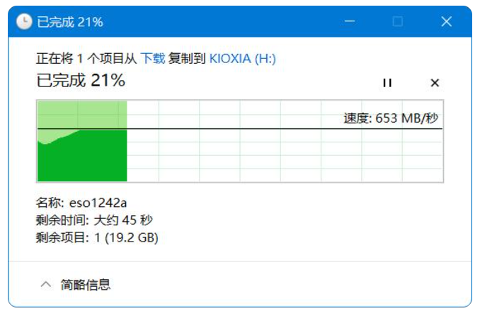 如果不想把玩游戏变成“渡劫”,那么就买一个读写速度快的固态硬盘吧。具体产品建议可以看看铠侠的XD10。这款硬盘拥有最大1050MB/s的读取速度和最大1000MB/s的写入速度,完全可以满足大多数游戏和软件对读写速度的需求。并且,在传输大文件时,这块硬盘传输速度最大可达1GB/s,即便是5~6个G的4K视频,也只需要几秒钟就能完成传输,所以也非常适合作为设计师、剪辑师日常存储的工具。