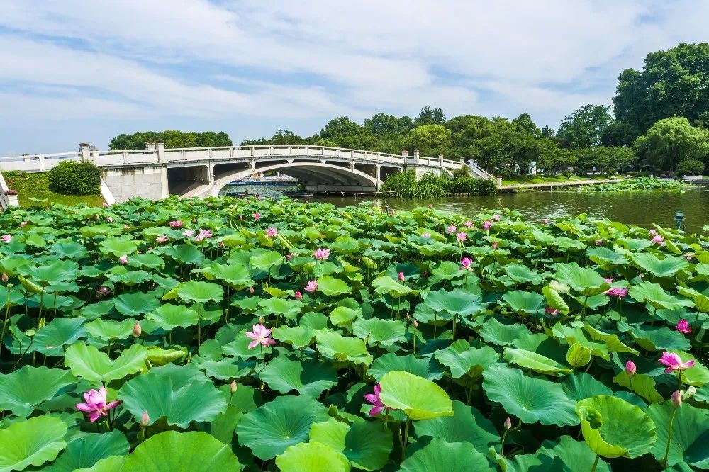 继续前行,用不了多久便到了玄武湖赏荷佳地之一的莲花广场。行走在湖边,和万顷荷花近距离接触,鼻尖仿佛嗅到了荷花淡雅的香气,心中的燥热立刻被抚平。