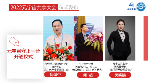 ——中伦律师事务所合伙人、央链法务樊晓娟、元宇宙产业委共同主席倪健中、元宇宙产业委秘书长何超共同宣布元宇宙守正平台正式开通。