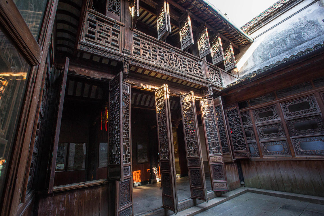 这第二和第三绝就是江南地区豪华建筑中常见的砖雕和石雕。一块看似普通的青砖,上面雕刻着精美的图案和寓意吉祥的故事,所以这里的每一块砖都是一件艺术品。徽州石雕因材料原因,加工难度更大,然而其雕刻工艺却更为复杂,所有的石雕更加体现了宅子主人的实力与大宅的价值。