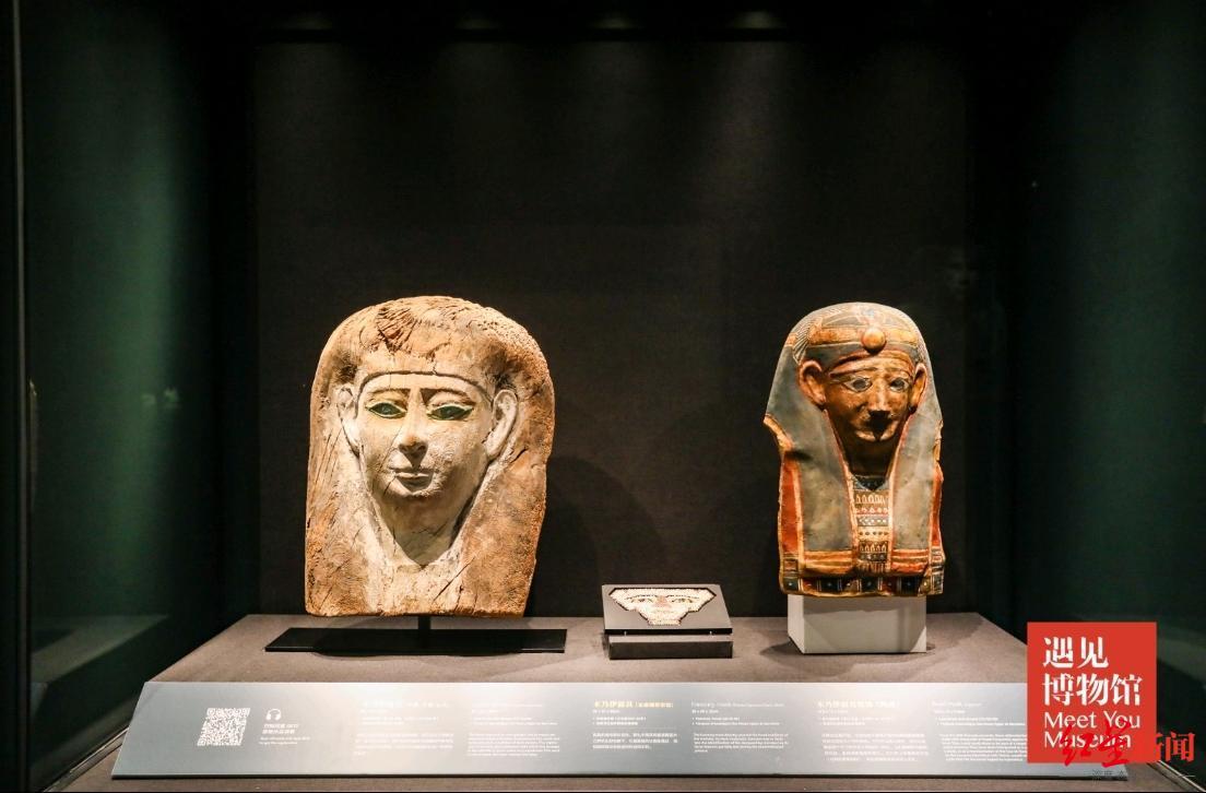这些展品不仅反映了古埃及文明对自然与神灵的崇拜,同时还体现了古埃及人对来世的想象和追求。红星新闻记者在展览现场看到,贵族们棺椁、面具上的装饰往往极尽奢华,不惜使用黄金、宝石和珍贵的矿物颜料,同时由于这些装饰绘画的内容和神话传说与逝者生前的生活密切相关,成为研究古埃及文明的重要史料,具有极高的艺术价值。