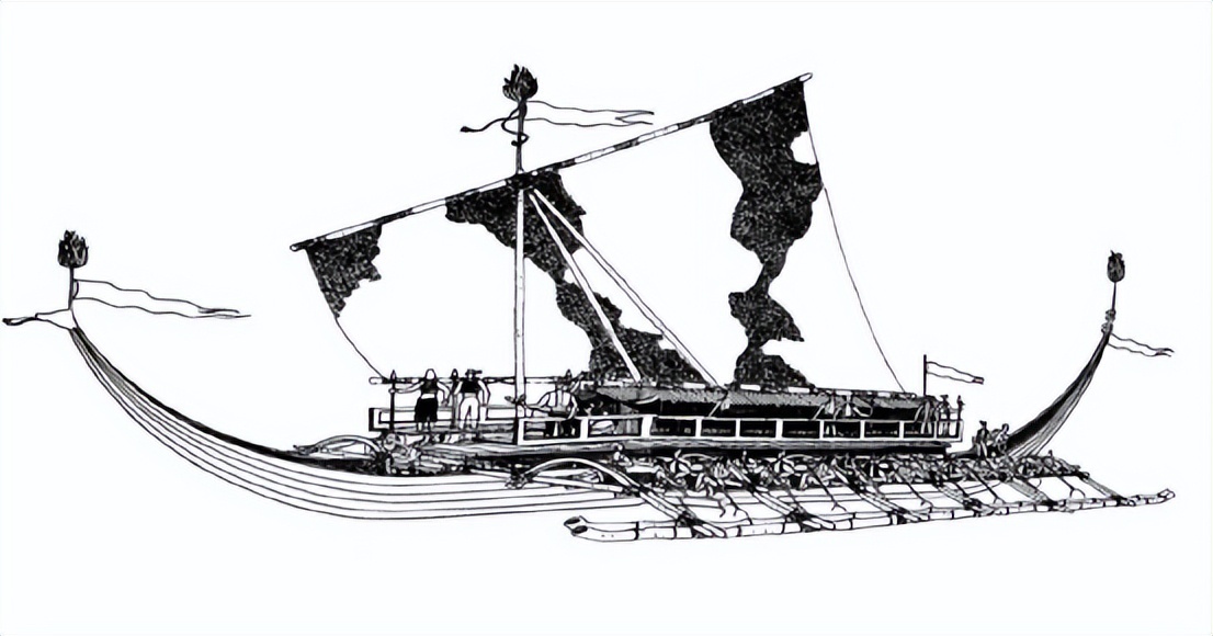 不过那个年代的东南亚独木舟并不是采用完整的三体结构,那样对于造船技术并不高的他们来说过于浪费,因此他们将木筏的技术引入造船行业,木筏主要还是利用竹子的空心结构产生的浮力,将主船体两侧的辅助船体换成了竹筏结构,依然可以起到同样效果,但是造价和建造难度明显降低。等到欧洲人在16世纪抵达东南亚的时候,这些独木舟已经发展成结构完善的大型战舰。